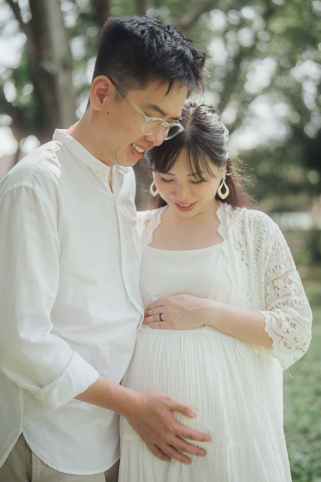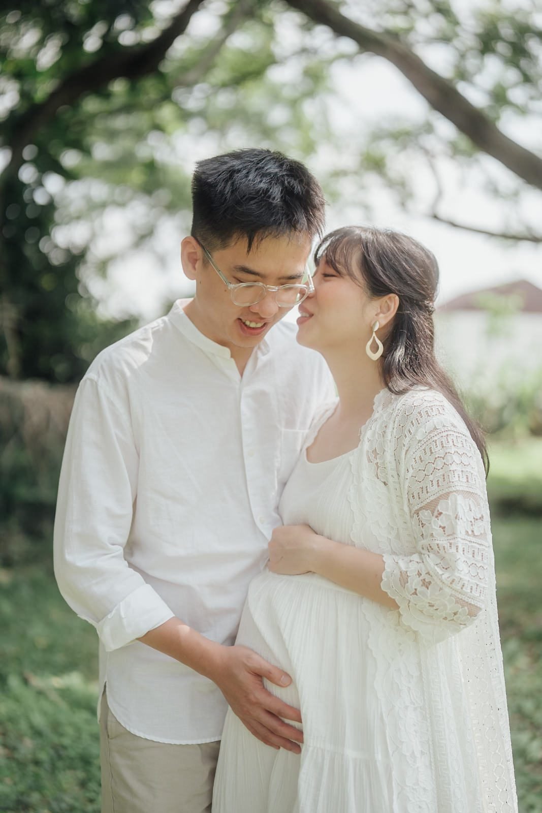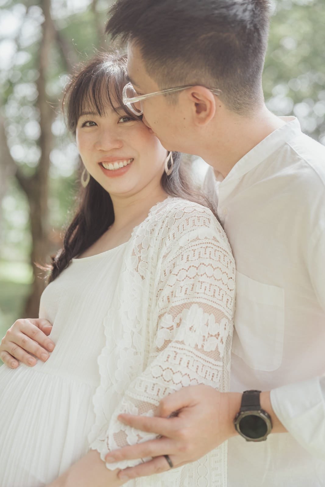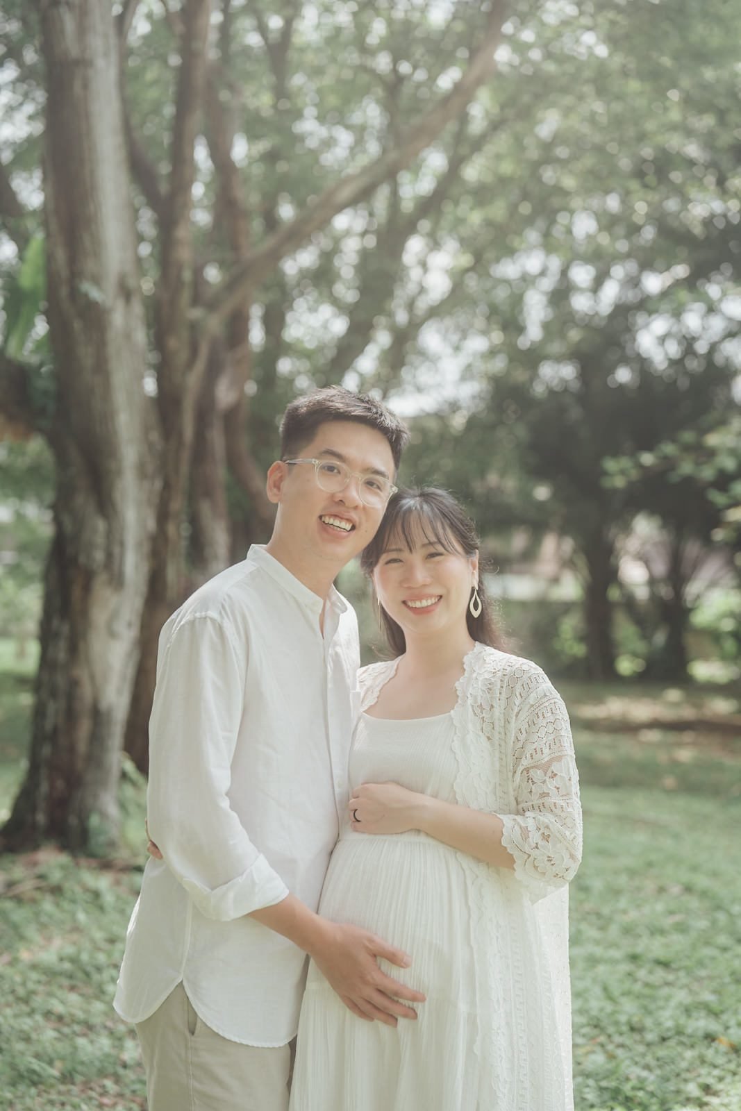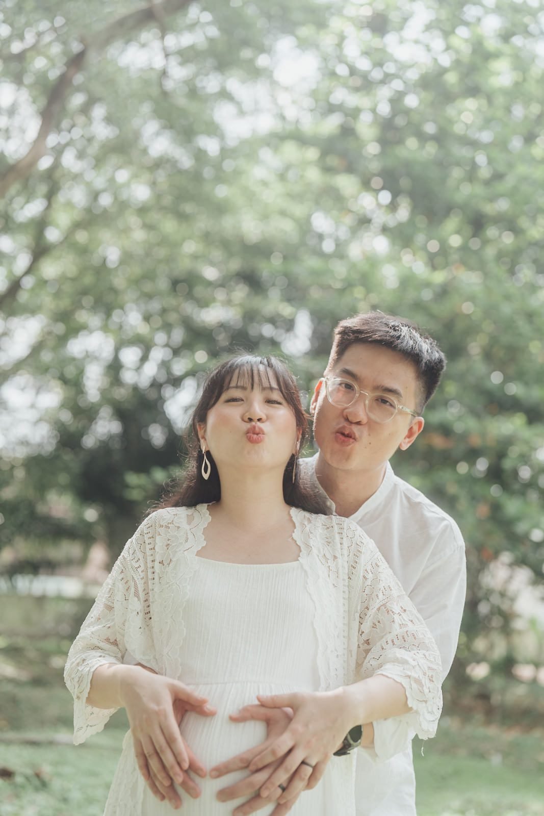 Subang Ria Lake Park is famous for its crowds, but with patience and a clear plan we turned busy park energy into gentle storytelling. The soft greens around the lake made for the perfect green outdoor maternity shoot, and when sunlight threaded through the trees it became a sunlight maternity photoshoot — warm, honest, and tender. We focused on simple gestures: hands on a bump, shared smiles, the quiet ways love shows up.